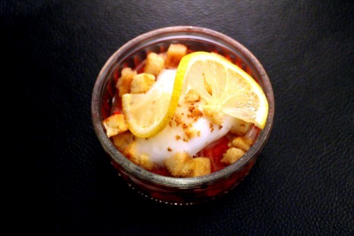 Limoncello-aardbeien met citroensorbet