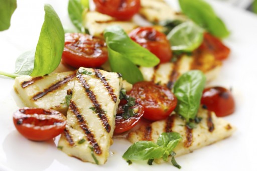 Hoewel je de kaas gewoon koud kunt verwerken, vinden wij het veel interessanter om hem te verwarmen. Niet voor niets is halloumi een schoolvoorbeeld van een grillkaas. De beste manier om schijfjes halloumi te grillen is in een grillpan (zo krijg je mooie strepen!), of gewoon in de koekenpan (zo krijg je meer een soort van panterprint).