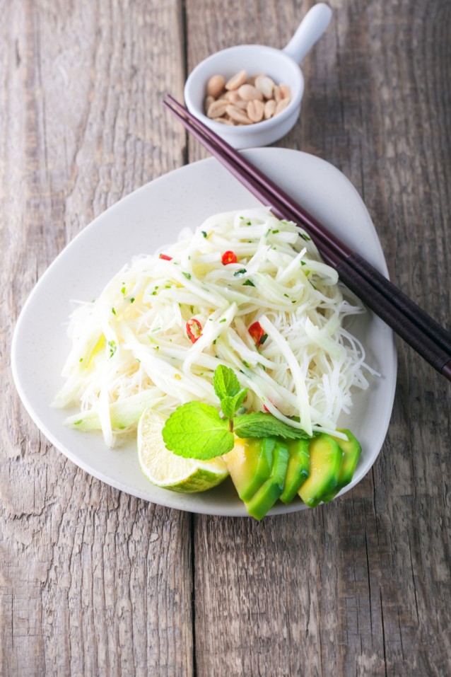 Wat je ook kan doen is de koolrabi in reepjes ter grootte van een lucifer snijden en serveren met een Aziatische dressing, avocado en jalapeño. Hier vind je een fijn recept.