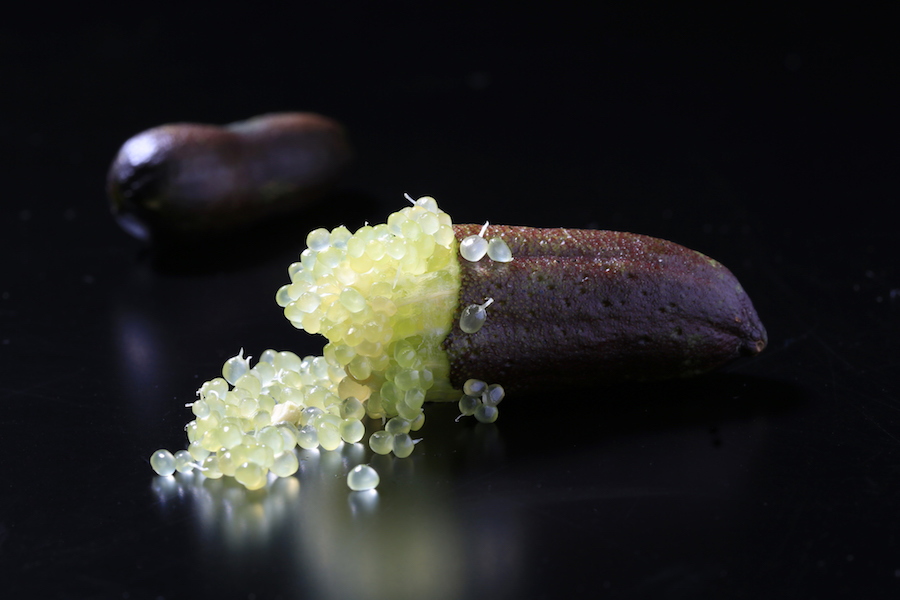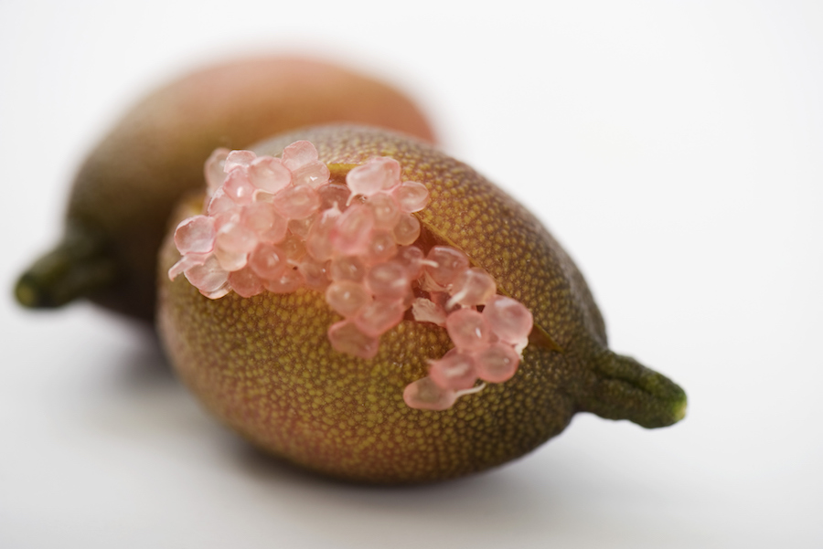 Limoenkaviaar – afkomstig van de vingerlimoen ofwel finger lime – is één van de wonderen van de natuur. Je treft deze kleine bolletjes met fris limoensap in een langwerpige vrucht die familie is van de limoen. Ze zijn afkomstig uit Australië.