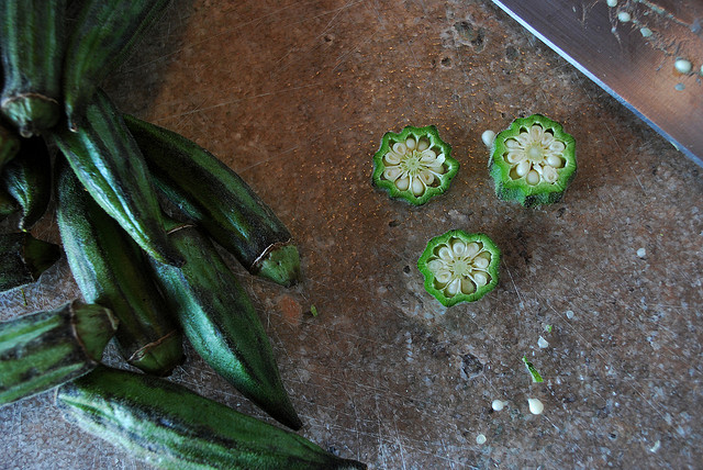 Ondanks dat de okra een onrijpe vrucht is, kun je ze trouwens prima rauw verwerken door salades of gewenteld door een losgeklopt ei en wat maïzena frituren.