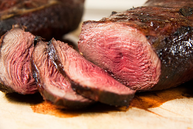 Denk hierbij aan de mooie en sjieke gedeelten van het beestje; ree- of hertenbiefstuk, struisvogelfilet en ga zo maar door. We bakken deze mooie gedeelten kort aan in een pan met hete olie en boter en laten dit verder garen tot de gewenste ‘cuisson’ in de oven op een lage temperatuur.