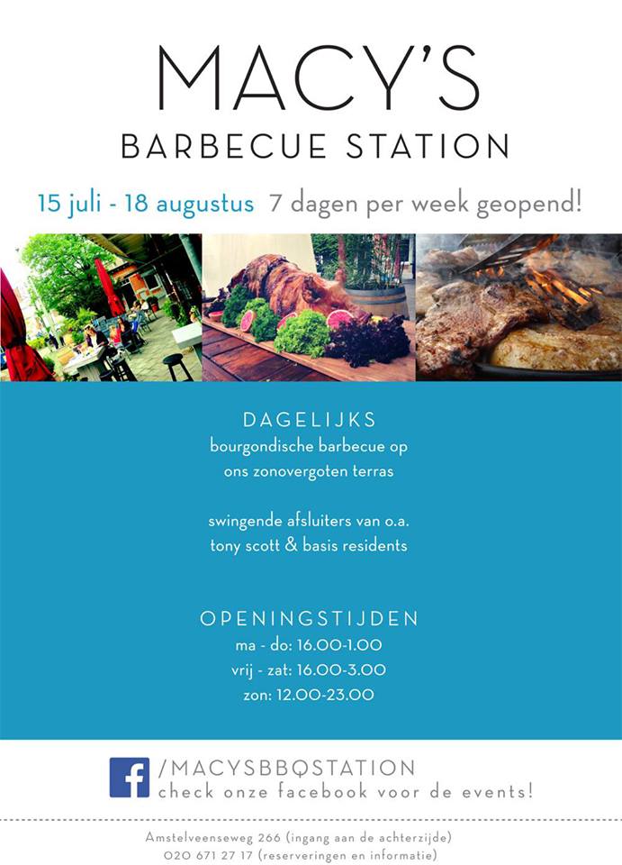Met dagen achter elkaar volle zon en warmte, moest het er een keer van komen: een pop-up restaurant, speciaal voor barbecue-lovers. Restaurant MACY’s bij het Haarlemmermeerstation in Amsterdam heeft de primeur en zet vijf weken lang, zeven dagen per week de barbecue aan.