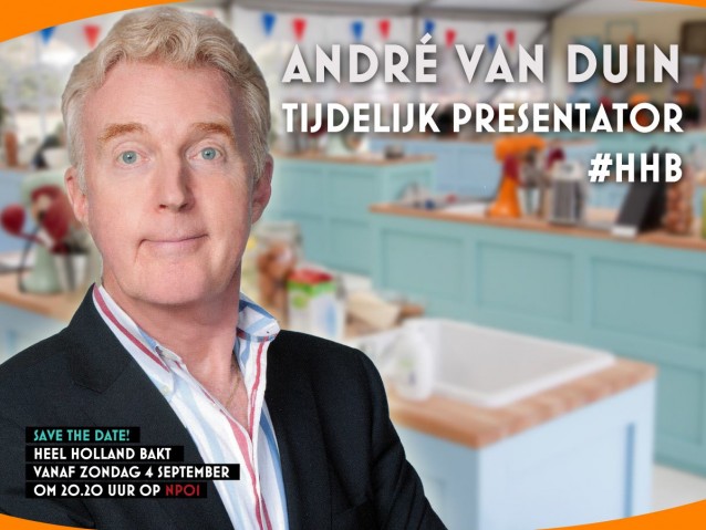Vandaag werd in Tijd voor MAX bekend gemaakt wie vanaf september aan de slag gaat als nieuwe (tijdelijke) presentator van Heel Holland Bakt. En dat is… André van Duin!