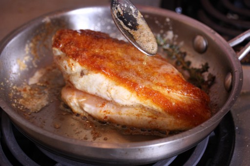 Hoe het moet? Heel simpel. Houd de pan een beetje schuin en vang met een lepel wat braadvocht op. Lepel dit over wat er in de pan ligt, en blijf dit vooral herhalen.