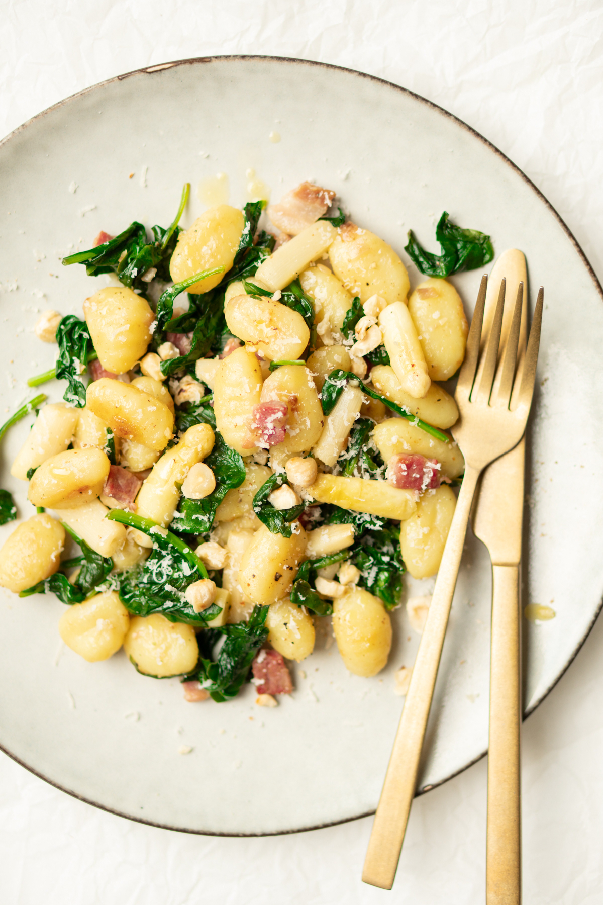 8. Gnocchi met witte asperges, spinazie en pancetta