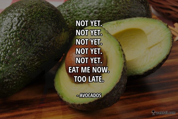 4. In het ergste geval vind je allemaal overrijpe avocado’s met deukjes erin, van de vorige gefrustreerde mensen.