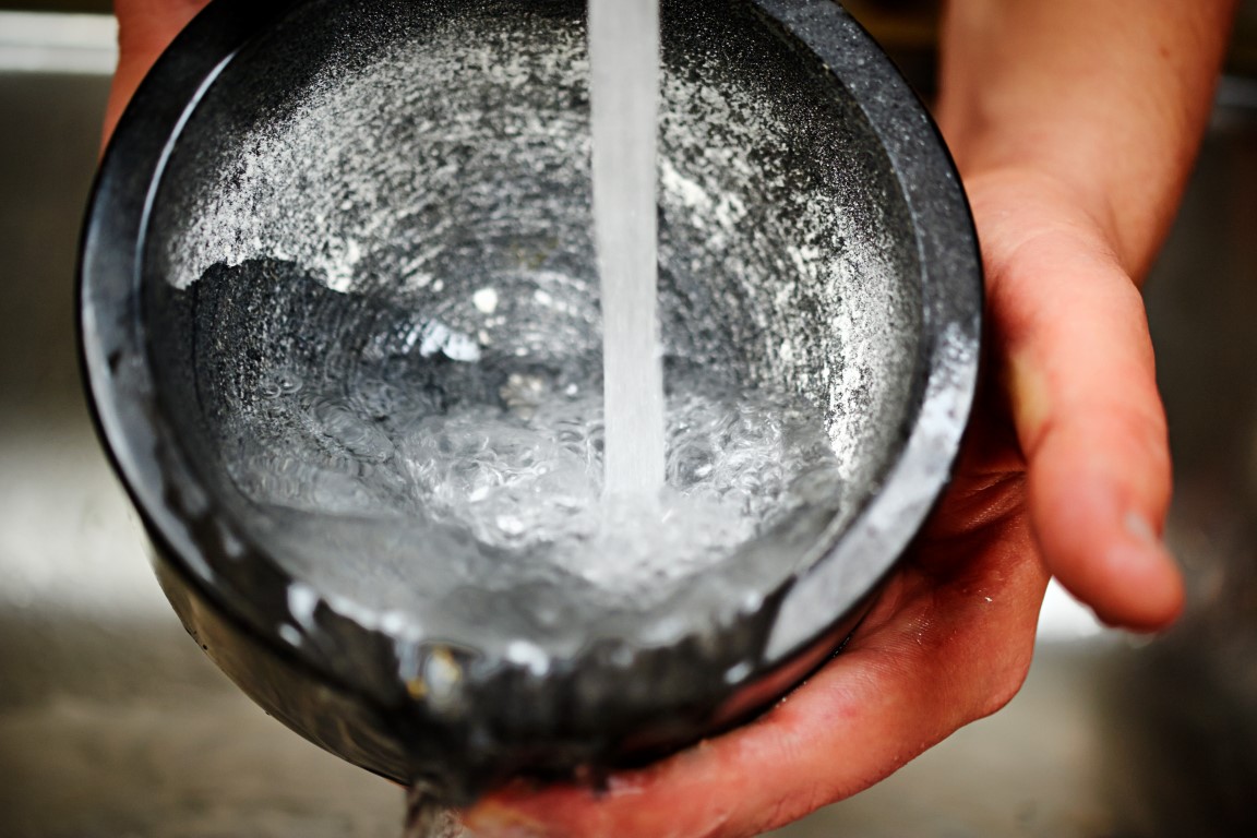 Hout, keramiek, porselein, graniet: het kan allemaal. Laatst kocht ik een nieuwe granieten vijzel en zag dat de binnenkant een beetje ruw was. Ruw is overigens niet erg; het zorgt juist voor een goede maling. Maar je moet zorgen dat de zwakke deeltjes/steentjes in de vijzel op voorhand verwijderd zijn. Met een paar eenvoudige stappen laat ik zien hoe je je ruwe granieten vijzel kunt voorbereiden en steengruis kunt verwijderen voordat je ‘m voor de eerste keer in gebruik neemt.