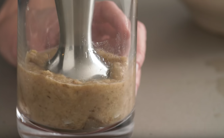 De in stukjes gesneden schil gaat met wat water in een pan op het vuur om een paar minuten te koken. Vervolgens giet je het pannetje af. Voeg wel een klein beetje vocht toe (of laat wat in het pannetje zitten), dat helpt bij het blenden van de schillen. Vervolgens blend je de schillen met een staafmixer tot een gladde mousse.