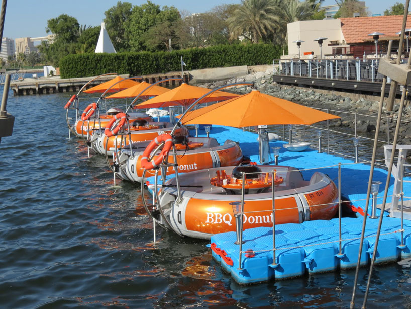 De té coole bootjes zijn gemaakt in de vorm van een donut met in het midden een ronde tafel en een barbecue. Daarnaast is de tafel zo vormgegeven dat je bordjes, bekers en bestek niet snel verschuiven en zit er ook standaard een parasol bij.