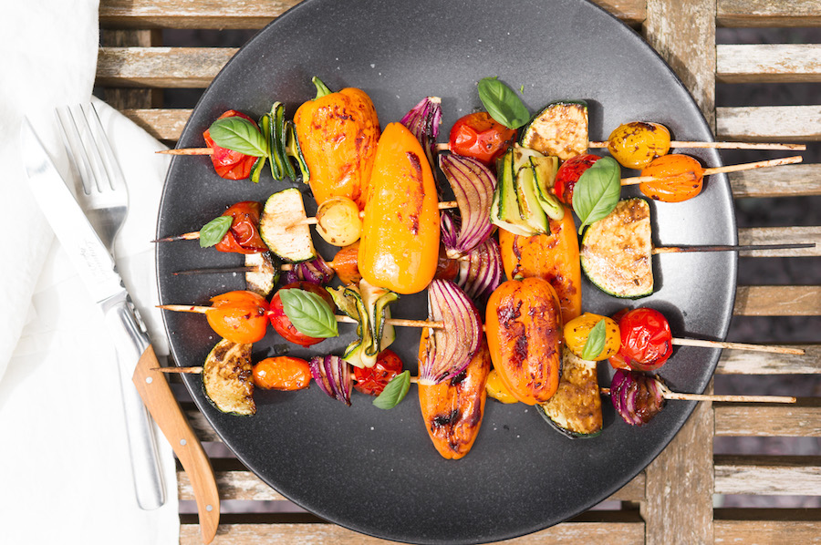 Ben je vegan, vegetarisch of heb je gewoon een keer geen zin in vlees? Dat kan! Steek dan je handen uit de mouwen en maak deze gezellige groentespiesjes voor op de barbecue. Het kan heel simpel of je kan er een feestje van maken met paprika, tomaat, uit, courgette, aubergine, noem maar op!