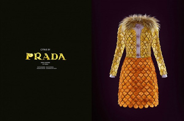 Fan van Prada, Alexander McQueen of Louis Vuitton, maar ook dol op eten? Je kunt die twee goed combineren. Bleek dat eerder al uit culinaire modeblogs, nu zagen we in Garage Magazine een geweldige editorial waarin hippe jurken worden geillustreerd door… eten. Citrus van Prada, walnoten van Vuitton, sla van McQueen? Wie heeft er honger?