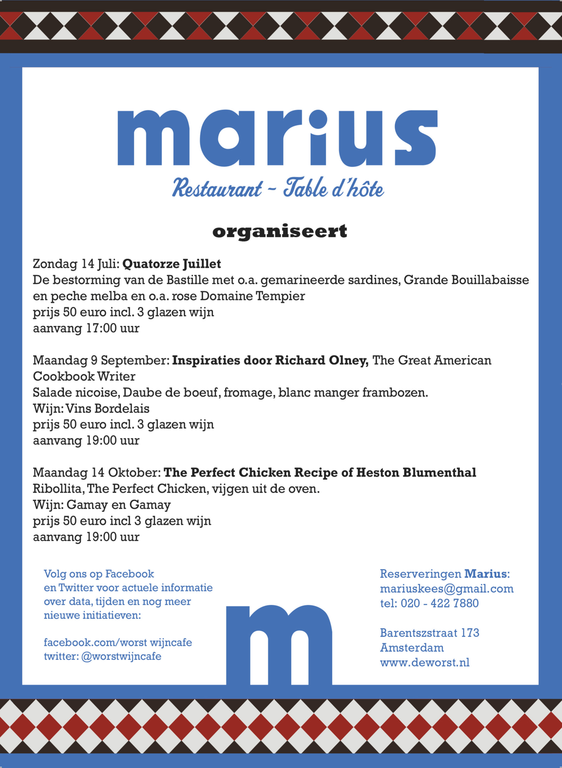 Bijzondere avonden bij restaurants Worst & Marius de komende tijd