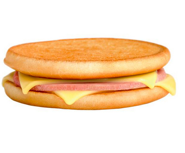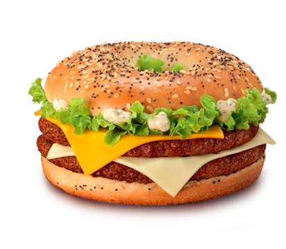 Een McDonald’s hamburger, maar dan op een bagelboordje: Le Grand Bagel Cheese.