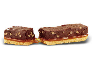 Le Brownie Stick van McDonald’s: een brownie met karamelsaus op een koekjesbodem.