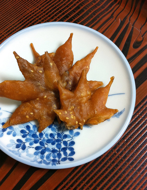 In Japan frituren ze namelijk esdoornbladeren. De bladeren hebben van zichzelf weinig smaak, maar ze worden gefrituurd in een zoet deegbeslag van suiker en sesam. Het resultaat noemen ze er momiji tempura: een crispy herfstblad in een tempura-jasje.