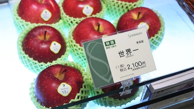 Een op het oog simpele appel kost hier bijvoorbeeld zo’n €15,75. Waarom Japanners zo veel geld uitgeven aan fruit? Dat zit zo: in Japan is fruit een luxe-artikel omdat het nooit bedoeld was als voedingsmiddel, in tegenstelling tot bijvoorbeeld groente. In Japan zijn altijd voldoende verse groenten en eetbare planten beschikbaar waar vitamines uit gehaald kunnen worden, mede door de vele regen die er valt en het schone water. Fruit is dus niet per se nodig om aan voldoende vitaminen te komen en dat maakt het tot een luxe-product.