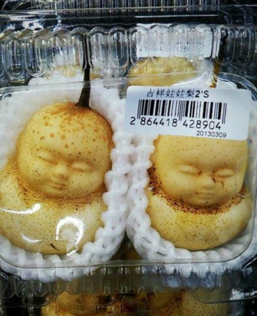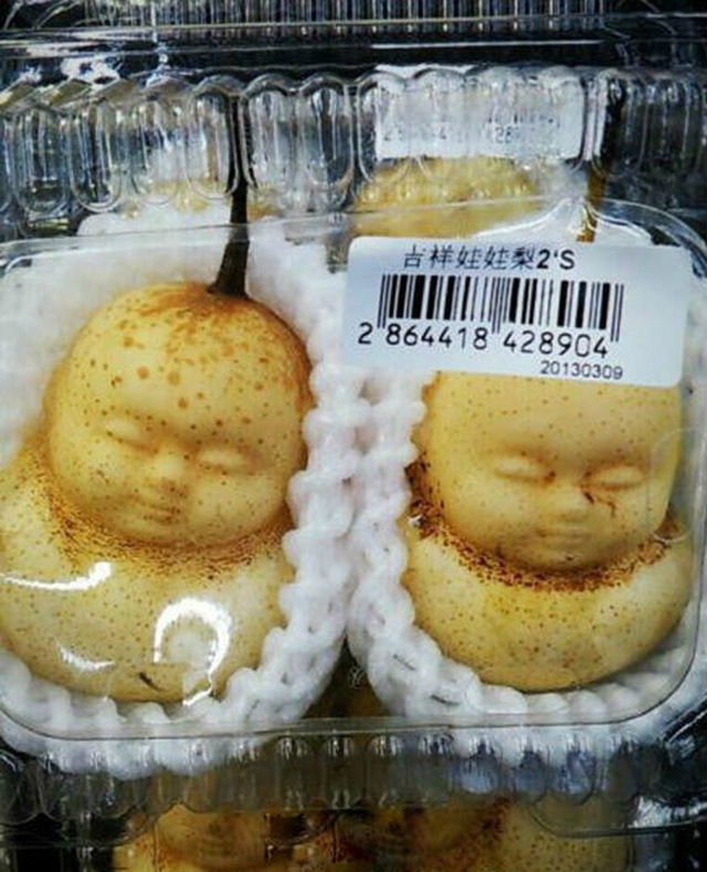 Deze peren behoren tot één van de meest bizarre food creaties die we de afgelopen tijd tegen zijn gekomen. Ze hebben namelijk de vorm van schattige buddha-baby’tjes. Waarom je dit zou willen eten? Wij hebben geen flauw idee. Maar dat ze er leuk uit zien, staat vast.