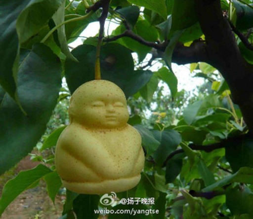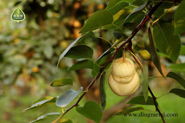 In China vind je deze vrolijke peren gewoon in de supermarkt. Helemaal natuurlijk is het groeiproces uiteraard niet: er komen wat trucjes aan te pas om de peren in deze vorm te krijgen. De creatieve boer die dit fruit verbouwd, meneer Hao Xianzhang, heeft als droom dat zijn product in de supermarkten van Engeland komt te liggen. Wij zijn benieuwd wanneer we deze lieve peren in onze Appie zullen spotten…
