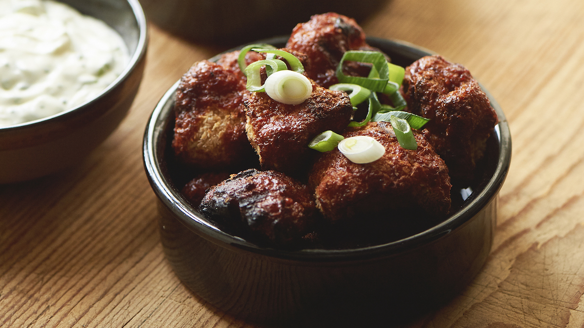 Dat mengsel wordt vervolgens in panko gewenteld en besprenkeld met een beetje olie. Gaar je de bloemkoolnuggets vervolgens op de barbecue tot ze mooi goud kleuren, dan heb je een heerlijke borrelhap. Heerlijk met een kruidige yoghurtdip of met een goede hot sauce.