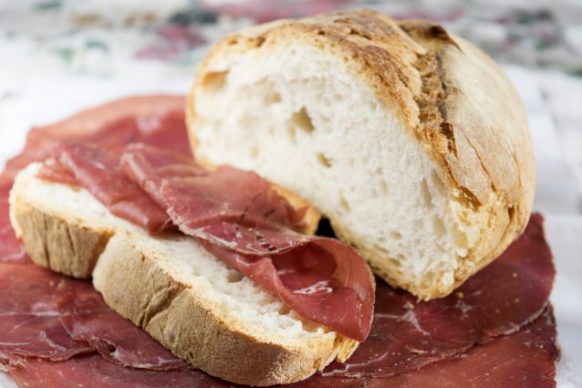 Bresaola wordt van magere stukken rundvlees gemaakt, vaak de ossenhaas of runderlende. Je zou denken dat het magere vlees na drogen misschien taai wordt, maar bresaola blijft juist heerlijk mals. Dat komt omdat het klimaat in Noord-Italie koeler is en de lucht niet gortdroog, daardoor droogt het vlees langzamer en wordt het niet te hard.