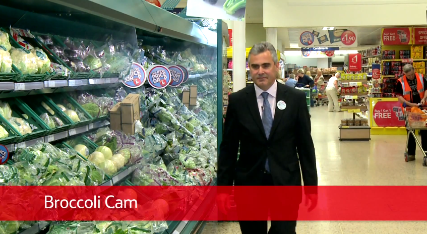 De Britse supermarktketen Tesco heeft een nieuwe gadget, de allereerste broccoli cam. Deze camera zit in het plafond en houdt nauwlettend het schap met broccoli in de gaten.