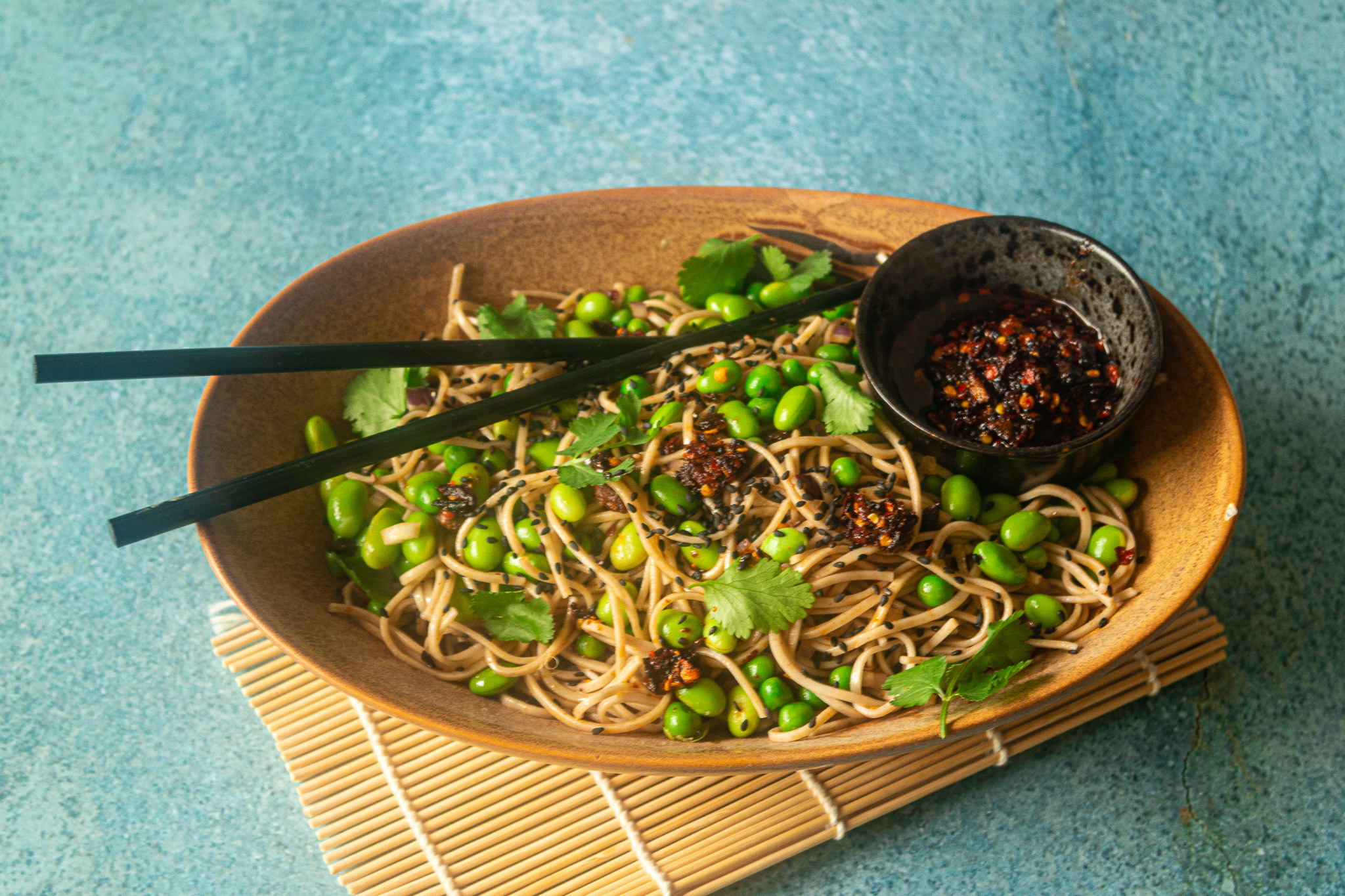 Wij hebben een zwak voor crispy chilli oil. Die knapperige, pittige olie maakt van simpele ingrediënten ineens een spannend gerecht. Zo ook bij deze noodles met edamame en erwtjes: goedkoop, verrassend lekker en klaar in een kwartier. Perfect voor als je weinig tijd hebt, maar toch iets bijzonders wilt eten.