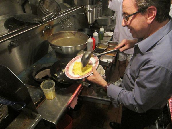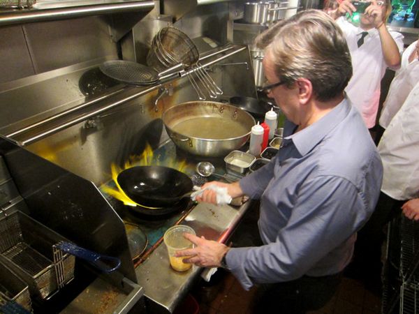 Tijdens de opening van het restaurant Mission Chinese Food in New York City liep de chef de keuken in en vroeg om een pan, een spatel en wat eieren. In minder dan 15 seconden bakte de chef een Frans omeletje. Wauw!