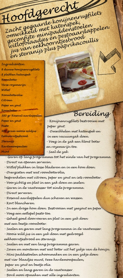 Na 3 dagen zich te hebben voorbereid was het dan zover: René kookte een drie-gangen menu volledig in de vaatwasser. Een deskundige jury bestaande uit onder andere voormalig wereldkampioen Toine Smulders testte het menu en het verdicht was louter positief! Toine zei zelfs het thuis ook te willen proberen, de rest vond het meer dan lekker en had niet verwacht dat het zo zou smaken.