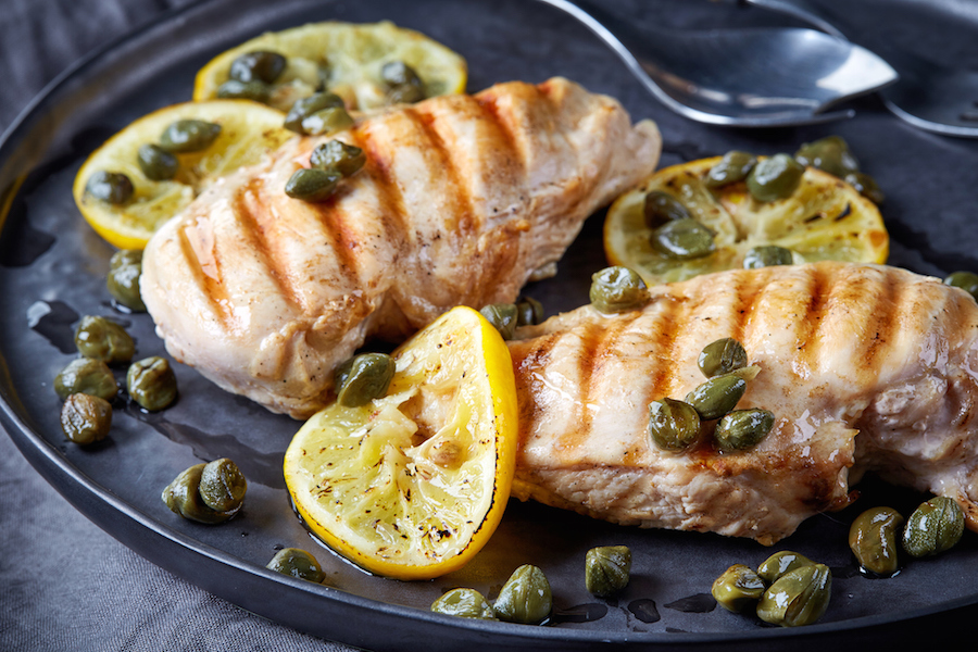 En over de saus gesproken: als het vlees voor je chicken piccata bruin is, haal je het uit de pan en blus je die af met citroensap en witte wijn. Voeg eventueel een uitje en knoflook toe en een handje kappertjes. Haal de pan van het vuur en roer er nog wat boter doorheen. Maak af met wat peterselie.