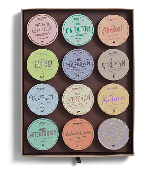 Deze serie verschillende soorten chocolade van Brandhouse & Bessermachen Designstudio is gebaseerd op twaalf verschillende archetypes en elke smaak past precies bij één van de persoonlijkheden.
