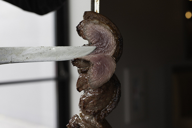 Toch kan het zo zijn dat je op vakantie in Spanje of Portugal een authentieke ‘churrascaria’ tegenkomt. Ga dan gauw naar binnen. Niet alleen is het vlees erg lekker, het is ook een hele belevenis in zo’n oud steakhouse. Er lopen mannen rond met enorme spiesen die het vlees aan tafel voor je afsnijden. Een soort kebab op een grote pin!