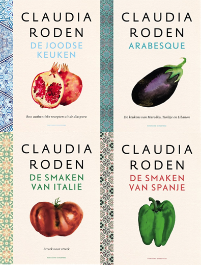 De Joodse keuken, Arabesque, De smaken van Italië en De smaken van Spanje van Claudia Roden zijn nu verkrijgbaar in de (digitale) boekhandel.
