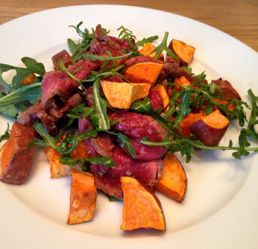 2. Lauwwarme biefstuksalade met zoete aardappel