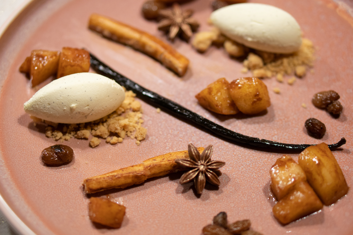 Het hoofdgerecht was langzaam gegaarde lamsnek met gerookte aal, krokante zeewier en koolrabi. En toe: losgeslagen appeltaart, waarbij het een feestje was om de borden op te maken. Kortom: dit gaan we zéker nog eens vaker doen!