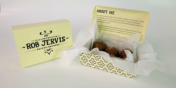 Als je na tientallen sollicitaties nóg niet wordt aangenomen moet je creatief solliciteren. Eerder schreven we al over een man die solliciteerde met een chocoladereep, en designer Rob Jervis deed het met een doosje bonbons.