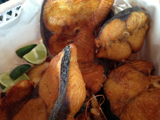Hier eet je een eenvoudige lunch of diner, bestaande uit grote schalen garnalen en gebakken en gefrituurde vis, frietjes en zoete bakbananen. De vissen komen spartelvers uit het water; je ziet ze naast je tafel uit de visnetten gehaald en gefileerd worden. Geen culinair hoogstandje, wel een echte aanrader voor visliefhebbers.