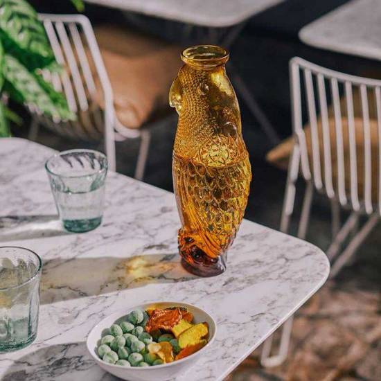 En de prijs voor leukste karaf gaat naar… deze kakatoe karaf natuurlijk! Het is een echte eyecatcher die je tafel binnen mum van tijd opvrolijkt. Oranje niet jouw ding? Hij is ook verkrijgbaar in mint en blauw. Oké, eerlijk toegegeven: voor € 38,99 euro wint hij niet de prijs voor de goedkoopste karaf. Toch is deze een stuk leuker dan de standaard glazen karaf van de Ikea die iedereen in huis heeft.