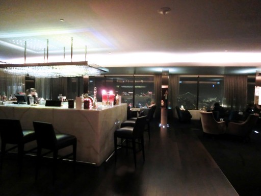 Voor bar/restaurant Panorama moet je eerst 24 etages omhoog in de lift. Maar de naam deed absoluut eer aan, wat een uitzicht! Dit is een van de restaurants van het Sheraton Hotel.