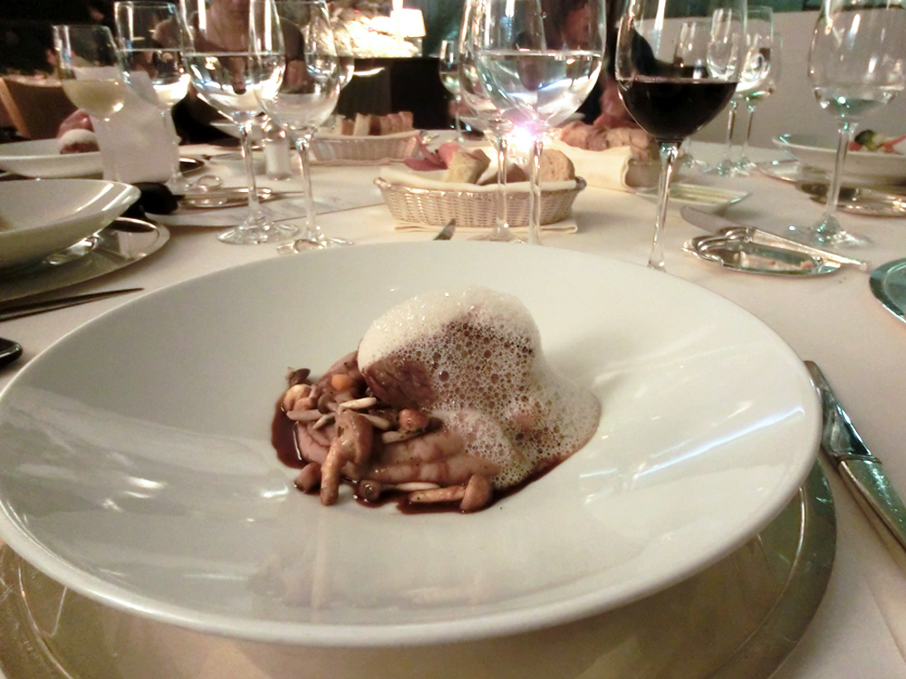 Leonel Peirere, de chef van bar/restaurant Panorama heeft een Michelin-ster, dus wij vielen met onze neus in de boter. Het voorgerecht was heel bijzonder en prachtig opgemaakt. Een schuim van rode wijn en een schuim van knoflook in combinatie met stukjes gekonfijte kabeljauw en de juiste kruiden maakte dat het een verrassend lekker voorgerecht was.