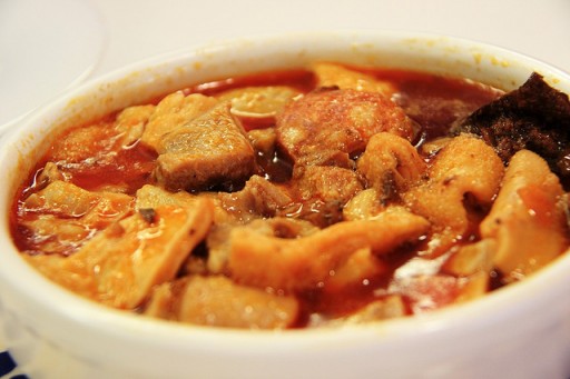 Een eenpansgerecht dat heel populair is El Cocido Madrileño. Letterlijk vertaald: ‘Een Madrileense stoofpot’. Het is een compleet gerecht bestaande uit drie verschillende gangen: soep, bonen en vlees. Het wordt vooral in de winter geserveerd. Als eerste wordt soep geserveerd, als tweede gang krijg je bonen met groenten voorgeschoteld en de laatste gang bestaat uit een combinatie van verschillende soorten vlees, meestal mergpijpjes ‘en relleno’, wat ‘gevuld’ betekent. Het schijnt dat je in restaurant La Bola (Calle Bola, 5, www.labola.es) de beste El Cocido Madrileño kunt eten.