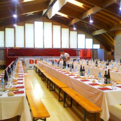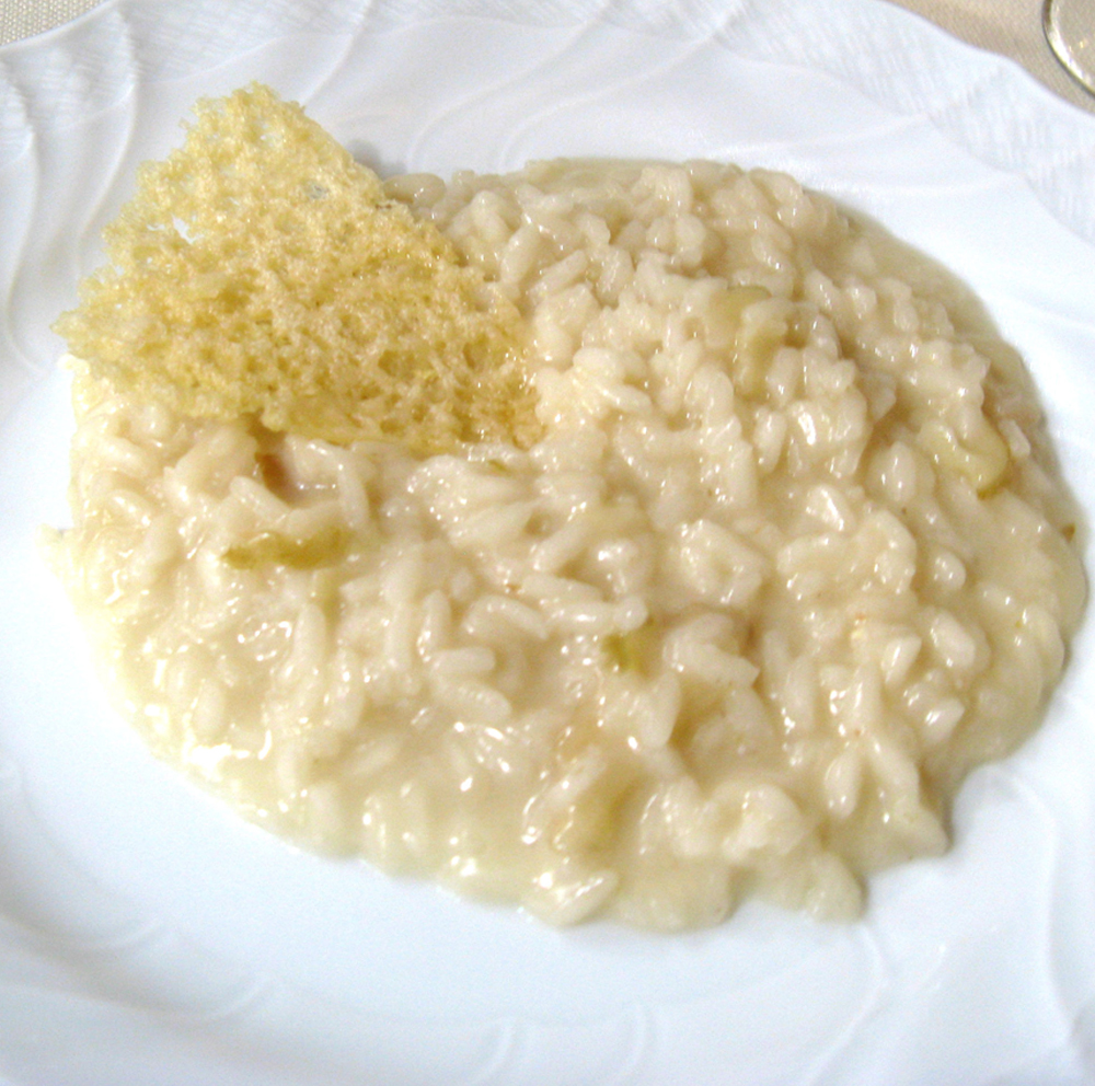 Risotto, kan niet ontbreken in deze regio. De saus was van kaas maar speciaal voor dit event was er appel aan toegevoegd, wederom erg smakelijk. Het wafeltje wat in de risotto staat is geraspte Parmezaanse kaas, even gesmolten in de pan en door het te laten afkoelen wordt het krokant. Van alle risotto´s die we hebben gegeten was dit de lekkerste!