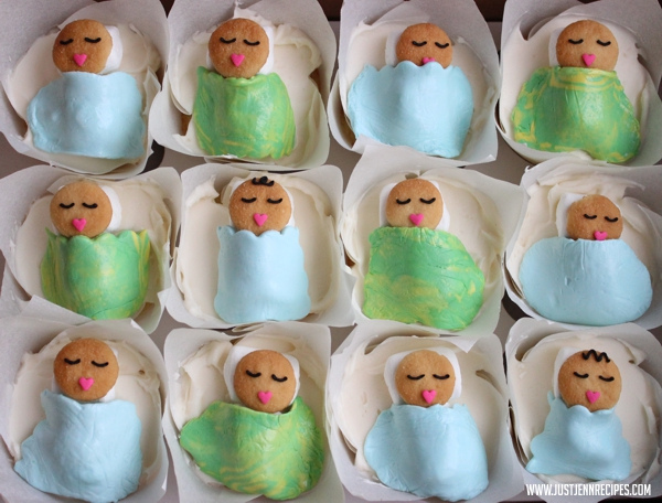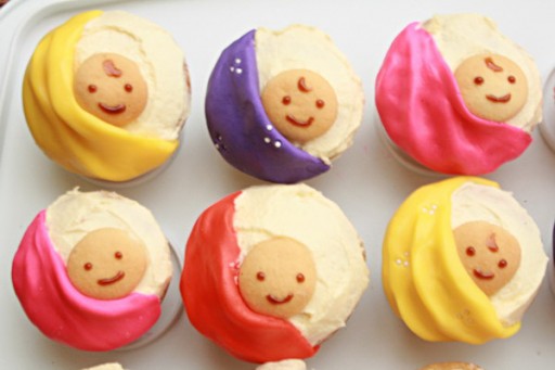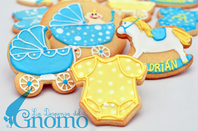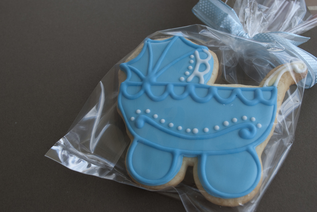 Nog makkelijker om te maken (en om mee te geven) zijn prachtig versierde koekjes. Maak ze zelf of koop kant-en-klare biscuitjes. Ook leuk: vul de koekjes met roze of blauwe kleurstof, om zo te laten zien of je een jongen of meisje krijgt.