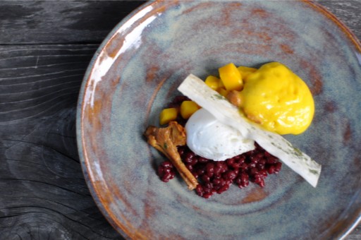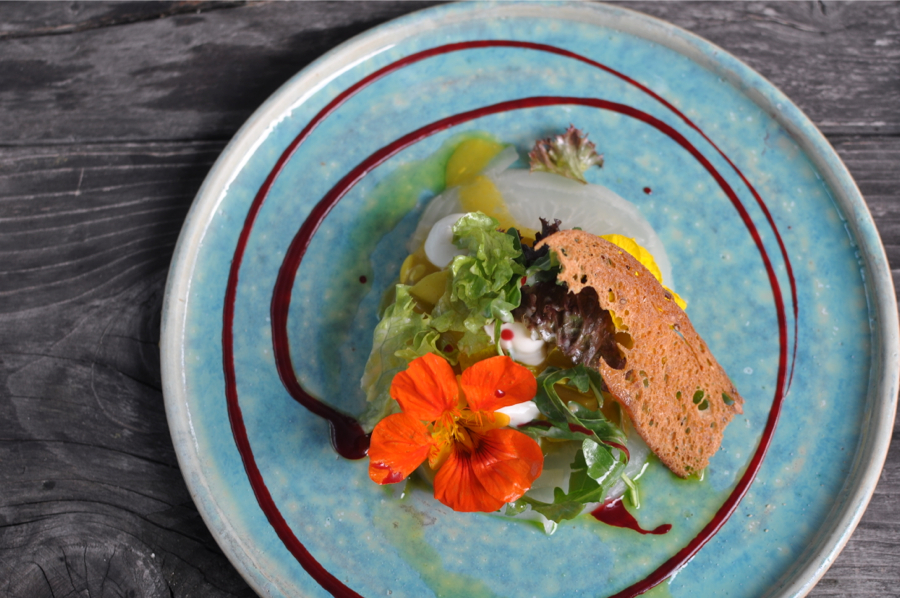 Ons menu wisselt elk moment, de natuur zorgt voor een continue stroom van producten van onze kwekerij, zorg-boerderij of uit de wilde natuur. Aan de hand hiervan maken wij gerechten. Het leuke daaraan is, is dat we elke dag weer nieuwe gerechten mogen creëren, ik dirigeer alleen de stroom vanuit de natuur. Het is een organisch proces wat nooit af is, elke dag puzzelen en sleutelen we weer, nooit te ver gezocht of gekunsteld maar vooral ‘echt’. Soms eigenzinnig, dan weer klassiek, maar bovenal natuurlijk.