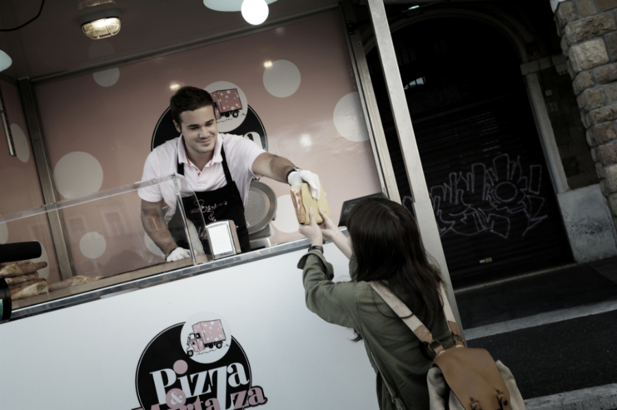 De eigenaar van Pizza&Mortazza speelt daar goed op in. In een kleine Ape (een Vespa-bus) die beschilderd is als een mortadella (een traditionele worst uit Bologna en omgeving) maakt hij de lekkerste pizza e mortazza, pizza bianca belegd met mortadella. Mortazza is, zoals je vast al had geraden, de Romeinse naam voor mortadella.