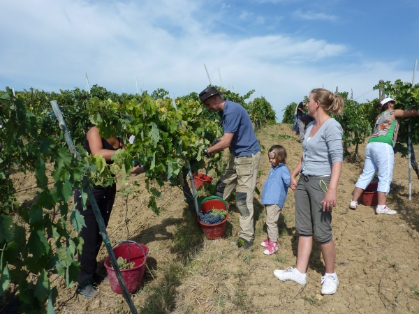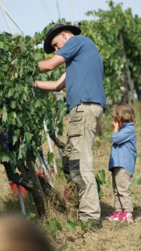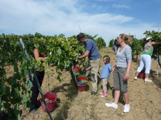 ‘En tja, dan begin je met plukken. Of nou, plukken. Het is eigenlijk meer knippen. Knippen, knippen en nog eens knippen. Van 8 tot 12 uur en dan weer van 2 tot 6 uur. Als je ’s avonds thuis komt plakken je vingers aan elkaar van het sap, heb je last van je vingers, armen en schouders en ben je blij dat je zit. Romantisch? Eigenlijk toch wel. Het idee dat je mee mag werken aan die ene fles die straks bij iemand op tafel staat is toch geweldig!