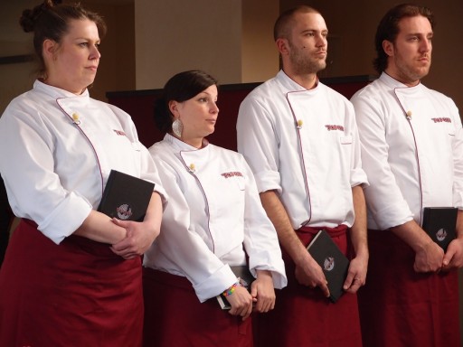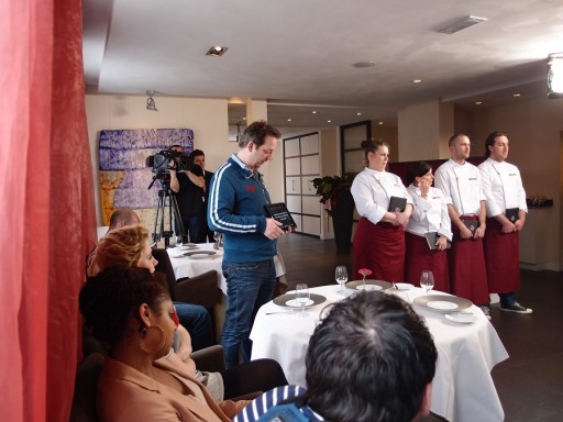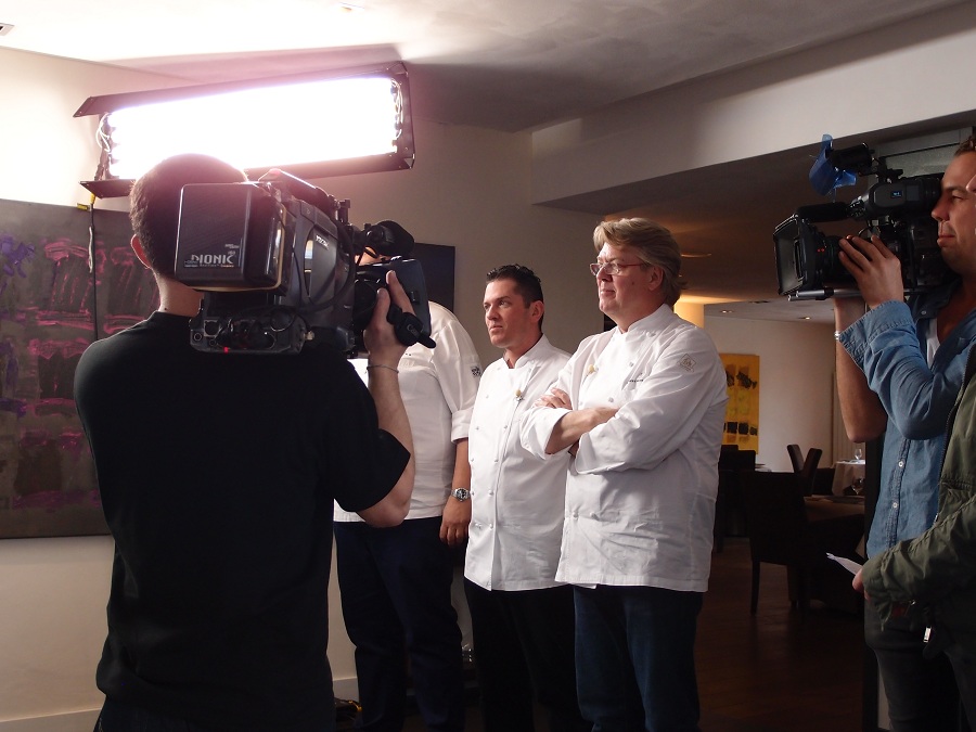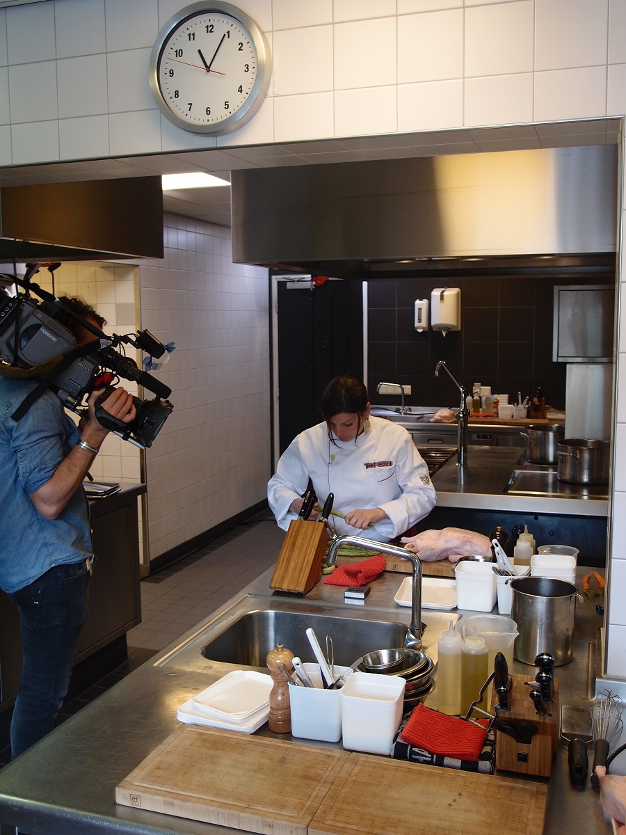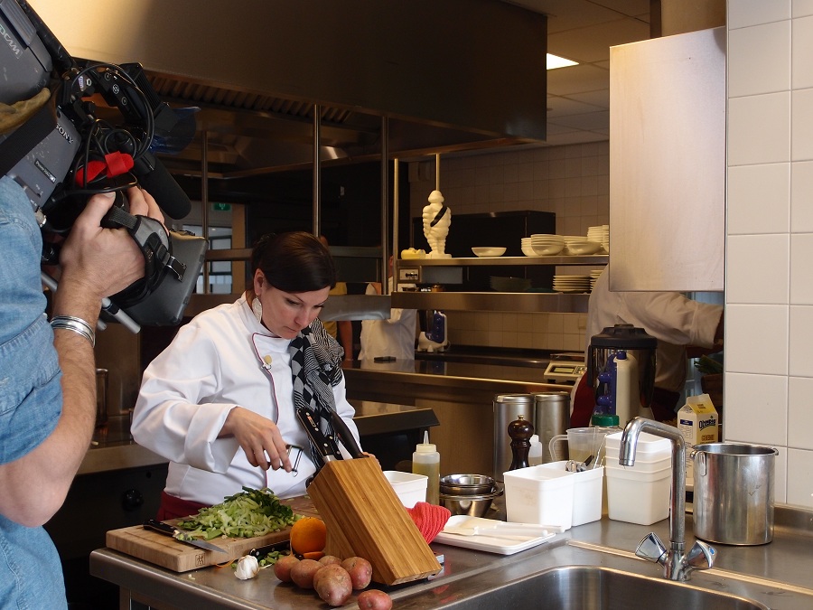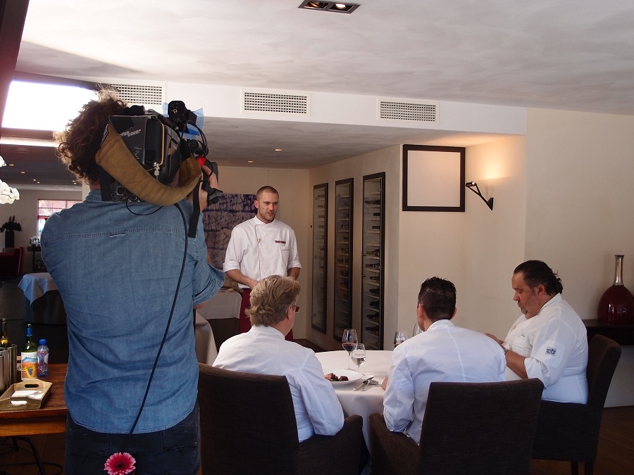 De eerste ronde zit erop. De kandidaten mogen uitblazen. Het zijn nerveuze uren, want niet alleen het feit dat hun gerecht wordt beoordeeld door een Michelinsterren chef maakt ze zenuwachtig. Ook de altijd aanwezige camera’s en 15-koppige filmploeg maken het de kandidaten niet makkelijk hun zenuwen te onderdrukken. Ze zijn door de wol geverfd en weten precies hoe ze die spanning in beeld moeten krijgen. Maar ook de chefs hebben het vandaag niet makkelijk. Het beoordelen van de gerechten moet namelijk goed in beeld worden gebracht. Dus stukjes vlees en groente worden tig keer omgedraaid, ingezoomd en nog maar weer eens aan de vork geprikt. Ook hun reactie wordt meerdere malen gefilmd. Het is bijna ‘green screen acting’ wanneer Julius Jaspers aan de witte muur lijkt te vragen wat deze vandaag voor ons gemaakt heeft.