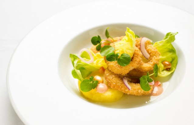 Naast de gerechten is ook de wijnkaart dik in orde; wij dronken een uitstekende witte wijn van de viognier- en chenin blanc-druif uit de Pine Ridge Vineyards in Napa.