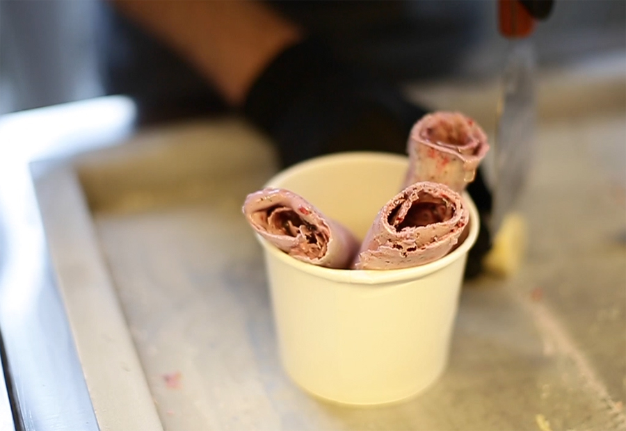 Stir fried ice cream is een concept dat is komen overwaaien uit het Verre Oosten. Op een bevroren plaat wordt een mengsel van room (al dan niet op smaak gebracht met bijvoorbeeld vanille, chocolade of aardbeien) gemengd met de door jou gekozen vulling (van fruit tot Oreo’s en van chocoladesaus tot marshmallows).