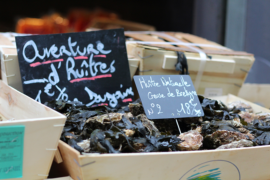 Tegenover de zaak vind je een poissonnerie (viswinkel) en boucherie (slager) van dezelfde eigenaar. De oesters liggen kraakvers op het ijs, de rotisserie staat al geurend aan op straat. Dit is het échteParijs.